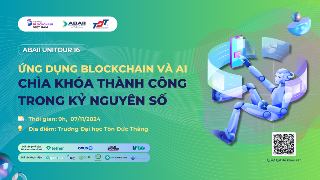 Ngày 7/11/2024, Hiệp hội Blockchain Việt Nam và Viện Công nghệ Blockchain và Trí tuệ nhân tạo ABAII sẽ phối hợp cùng Trường Đại học Tôn Đức Thắng tổ chức chương trình ABAII Unitour với chủ đề “Ứng dụng Blockchain và AI: Chìa khóa thành công trong kỷ nguyên số”.