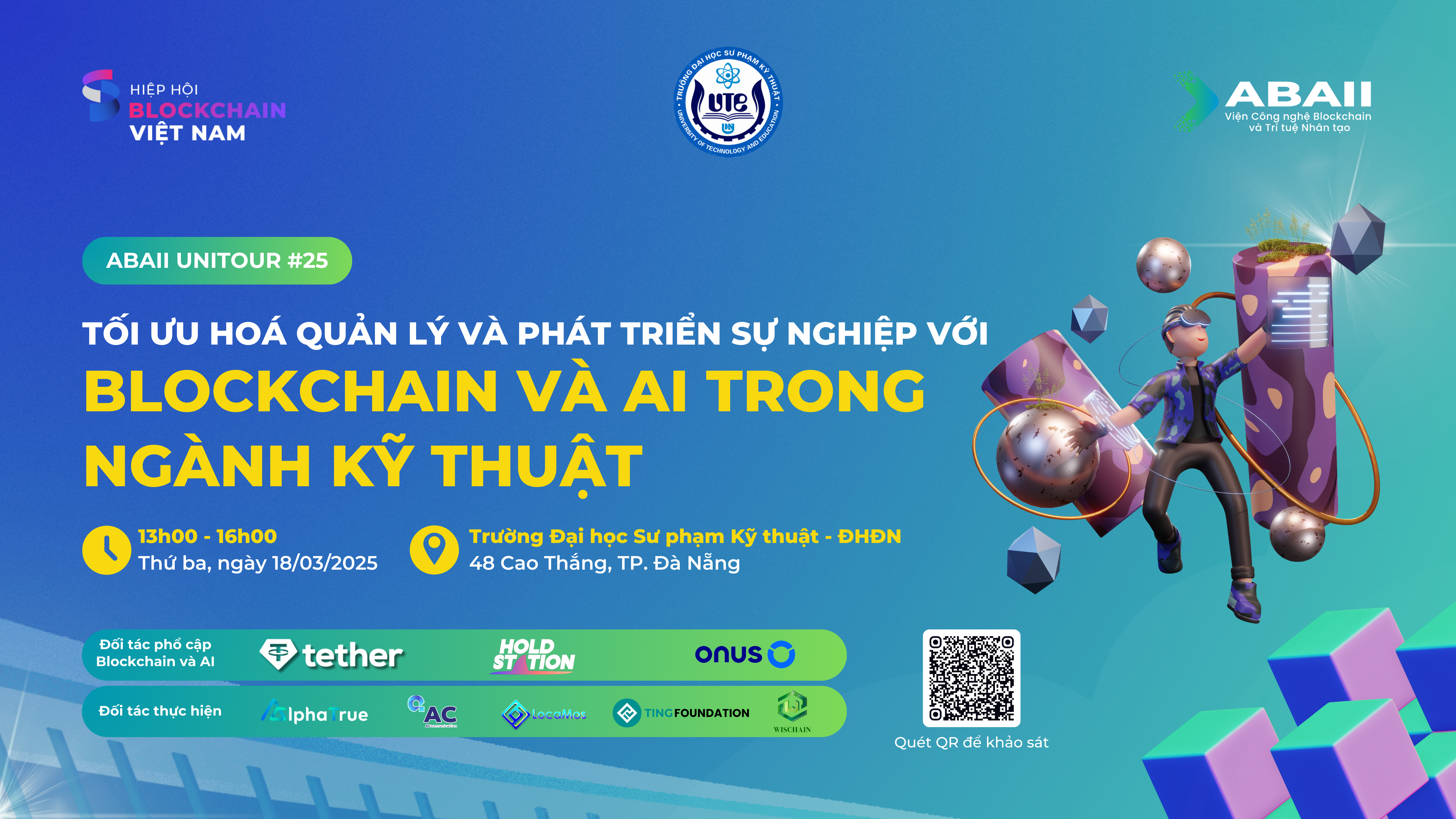 Hội thảo “Tối ưu hóa quản lý và phát triển sự nghiệp với Blockchain và AI trong ngành kỹ thuật” tại trường Đại học Sư phạm Kỹ thuật – Đại học Đà Nẵng là chương trình thứ 25 trong chuỗi Unitour – Phổ cập Blockchain và AI tại các trường Đại học trên cả nước, do Viện Công nghệ Blockchain và Trí tuệ nhân tạo ABAII và Hiệp hội Blockchain Việt Nam triển khai từ tháng 3/2024. Trước đó, chương trình đã được tổ chức tại 24 trường Đại học uy tín trên cả nước: Đại học Y Dược TPHCM, Đại học Y khoa Phạm Ngọc Thạch, Đại học Luật TPHCM (UL), Đại học FPT Cần Thơ, Đại học Công nghệ TPHCM (HUTECH), Đại học Kinh tế TPHCM (UEH), Đại học Kiến trúc Đà Nẵng (DAU), Học viện Ngân hàng (BA), Học viện Bưu chính Viễn thông (PTIT), Đại học Văn Lang, Đại học Thương mại, Đại học Kinh tế – Luật, Đại học Kinh tế Quốc dân, Đại học Quốc tế – ĐHQGHCM, Đại học Tôn Đức Thắng và Đại học Kinh tế – Tài chính,… Unitour là một trong những dự án xã hội mà ABAII và VBA đang tích cực triển khai để phổ cập Blockchain và AI, giúp nâng cao năng lực lao động trẻ, tối ưu quy trình cho doanh nghiệp thông qua các hoạt động đa dạng như MasterTeck – Nền tảng học trực tuyến hàng đầu Việt Nam về Blockchain và AI, Trợ lý pháp lý miễn phí “AI tra cứu luật”, chương trình truy vết các dự án có dấu hiệu lừa đảo Chain Tracer, chuỗi hội thảo chuyên sâu về Fintech, tài sản thực được token hóa (RWA), Tài chính phi tập trung (Defi),…
