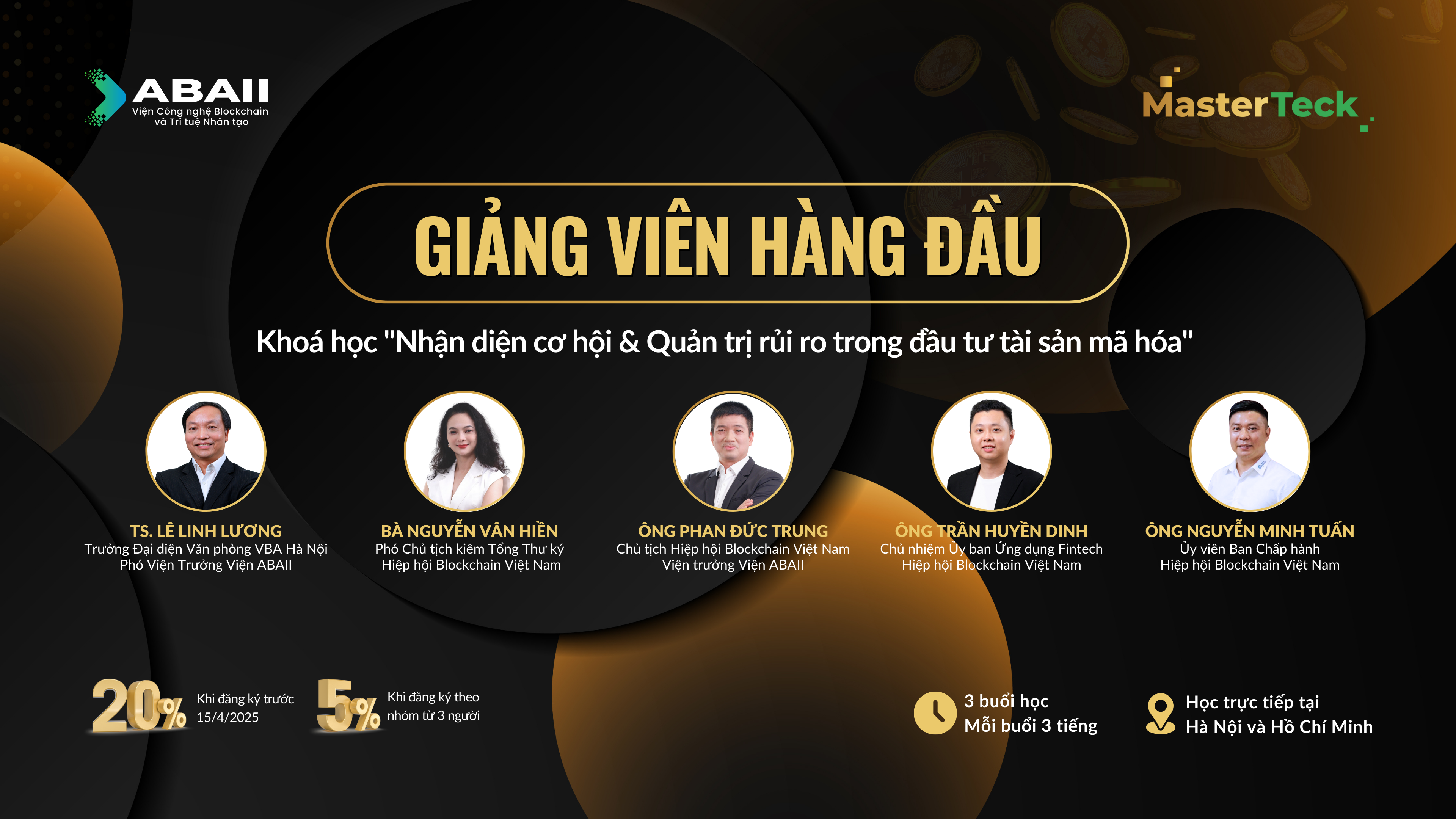 Một khóa học chất lượng không chỉ được quyết định bởi giáo trình, mà còn nằm ở người đứng lớp. Tại Viện Công nghệ Blockchain và Trí tuệ Nhân tạo ABAII, học viên không học lý thuyết suông, mà được tiếp cận trực tiếp với các chuyên gia đang kiến tạo chính thị trường tài sản mã hoá tại Việt Nam. Khóa học chuyên sâu về đầu tư tài sản mã hóa quy tụ đội ngũ giảng viên là những gương mặt uy tín trong giới tài chính – công nghệ – chính sách.