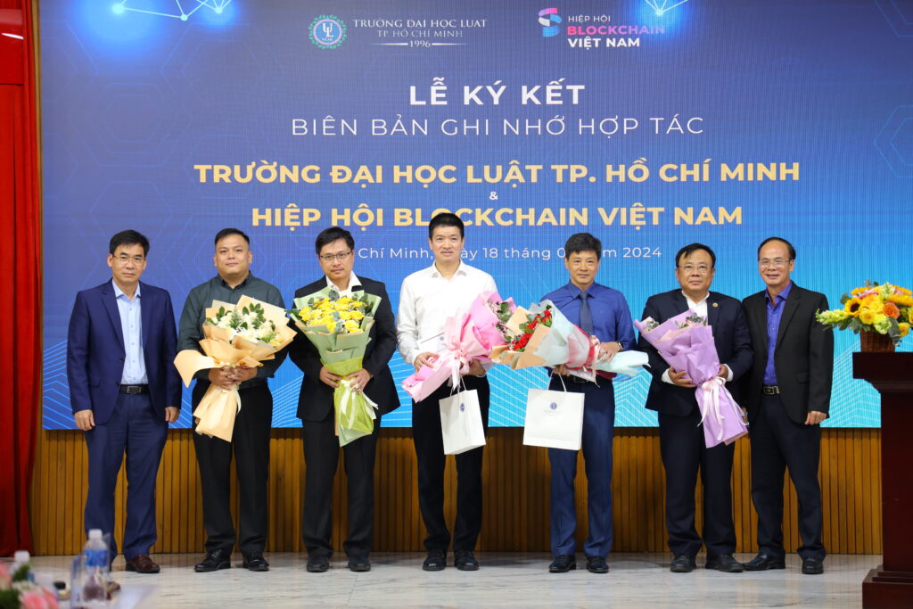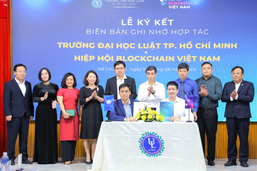 Ngày 18/6/2024, Hiệp hội Blockchain Việt Nam (VBA), Viện Công nghệ Blockchain và Trí tuệ nhân tạo ABAII đã phối hợp với Đại học Luật TPHCM tổ chức tọa đàm “Ứng dụng AI & Blockchain trong ngành luật” cho giảng viên, sinh viên nhà trường và ký kết Biên bản Ghi nhớ (MOU) về việc thúc đẩy đào tạo, phổ cập blockchain, AI.