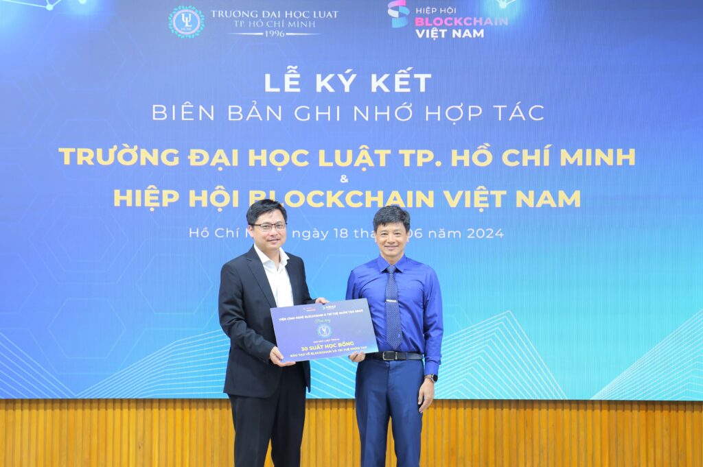 Về phía Hiệp hội Blockchain Việt Nam, ông Phan Đức Trung, Phó Chủ tịch thường trực là người đại diện ký kết MOU với Đại học Luật TPHCM nhằm tăng cường quan hệ hợp tác song phương, phối hợp tổ chức các chương trình đào tạo cho giảng viên, sinh viên; nghiên cứu khoa học và chuyển giao ứng dụng công nghệ giữa hai bên; tăng cường chất lượng hoạt động đào tạo kỹ năng liên quan đến công nghệ Blockchain & AI; Cấp chứng chỉ công nghệ; Tổ chức các khóa học Blockchain & AI trực tuyến; cung cấp nguồn nhân lực chất lượng cao.