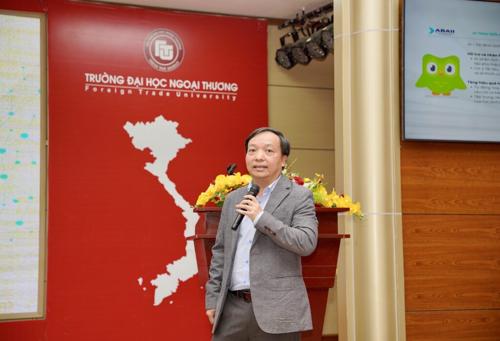 TS. Lê Linh Lương, Phó Viện trưởng Viện ABAII đã có bài trình bày tại sự kiện với chủ đề “Ứng dụng Trí tuệ Nhân tạo trong học tập”. Ông Lương cho biết, AI đang tác động rõ nét lên thị trường lao động. Theo OpenAI, có 300 triệu việc làm toàn thời gian bị ảnh hưởng do tự động hóa, và 2/3 công việc ở Mỹ sẽ được tự động hóa một phần nhờ vào AI. Còn theo Microsoft, cứ 4 người thì có 3 người đang sử dụng AI tại nơi làm việc và mức sử dụng AI tăng gần gấp đôi trong sáu tháng qua.