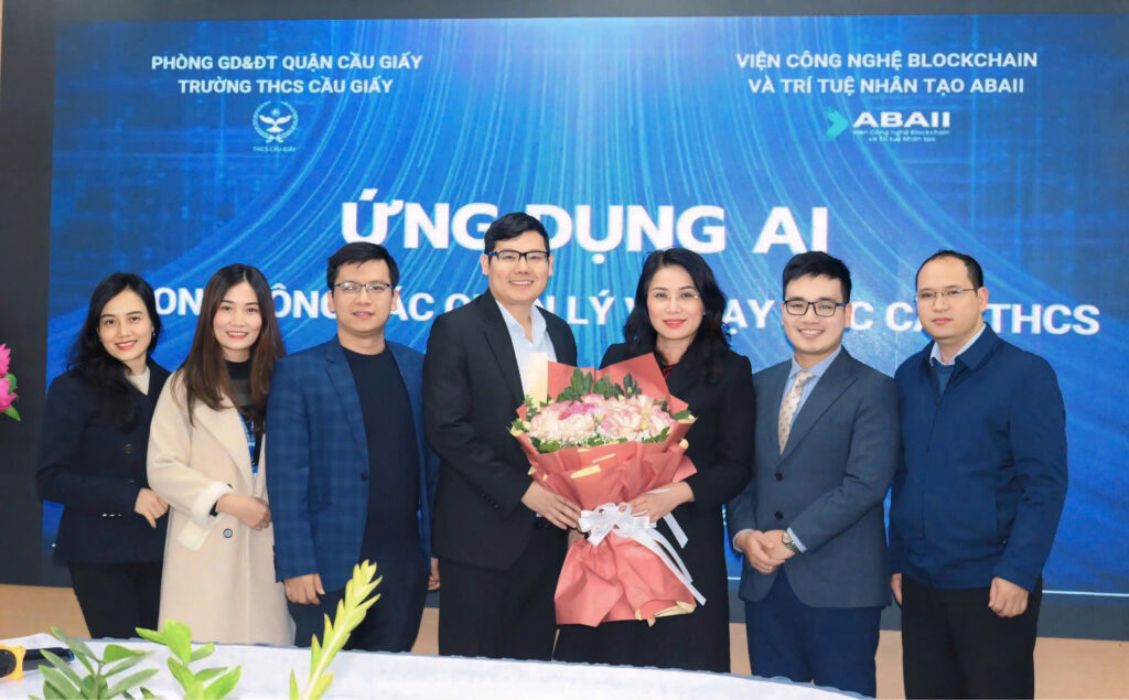 Nhằm đón đầu xu hướng công nghệ trong giáo dục và nâng cao chất lượng giảng dạy, chiều ngày 25/02/2025, Viện Công nghệ Blockchain và Trí tuệ nhân tạo ABAII đã tham gia chương trình tập huấn “Ứng dụng Công nghệ AI trong công tác quản lý và dạy học” theo lời mời của trường THCS Cầu Giấy – Hà Nội.